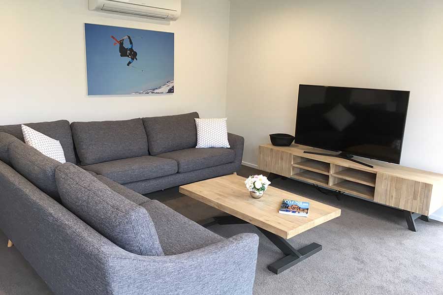 The bedrooms are configured as a Queen room, and a super king or two king singles in the extra bedroom. Each bedroom has the latest smart technology flat-screen television along with complimentary WIFI internet. The Kitchenette has a variety of quality appliances including a Nespresso coffee machine to cater to most requirements. There is benchtop cooking, a full fridge/freezer, and a dishwasher. The open plan living/dining area is compact but really suitable to relax in, in the evenings. A terrace with outdoor furniture has 180-degree views of the southern alps mountain range. There no garage available at this property however there is plenty of parking space adjacent to the front entrance is available.