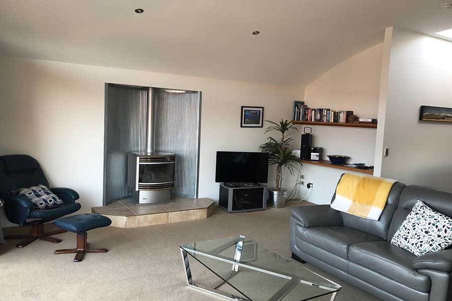 This luxury one bedroom fully furnished apartment is perfect for couples. It is located only minutes from the lakefront and a short stroll across the park to town. The lounge offers a feature Wanaka rock gas fire for ambiance in the evenings.